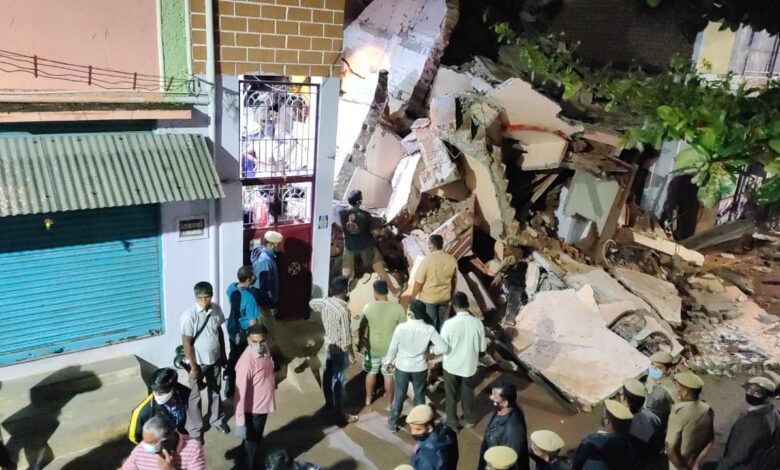 6 வயது குழந்தை தன்வீர்,வனஜா(68), மனோஜ்குமார்(49), கவிதா(38), கஸ்தூரி, ஆகியோர் மீட்கப்பட்டனர். இடிபாடுக்குள் மணிகண்டன் என்பவர் மட்டும் சிக்கியுள்ளார். அவரை மீட்கும் பணி நடந்து வருகிறது.சம்பவ இடத்தை மாவட்ட ஆட்சியர் ராஜாமணி, போலீஸ் கமிஷனர் சுமித்சரண் நேரில் வந்து பார்வையிட்டு, மீட்பு பணிகளை துரிதப்படுத்தினர்.