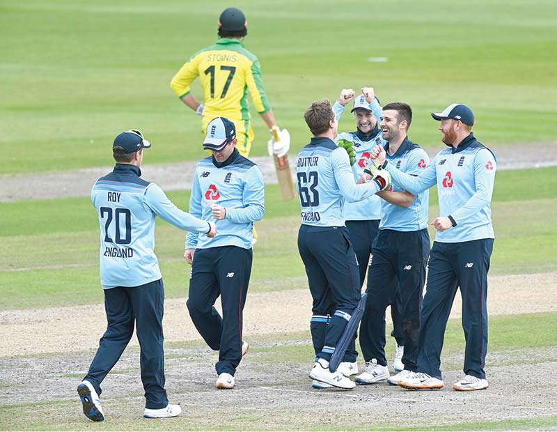 கேப்டன் ஆரோன் பின்ச் 16 ரன்கள் எடுத்திருந்த நிலையில் மார்க் வுட் வீசிய பந்தில் கேட்ச் கொடுத்து அவுட்டாகி விட்டார். மூன்றாவதாக இறக்கிய மார்கஸ் ஸ்டொய்னிஸ் 34 பந்துகளில் 43 ரன்கள் விளாசி ஆடிக்கொண்டிருந்தார். அவரும் பின்ச் போலவே மார்க் வுட் வீசிய பந்தில் கேட்ச் கொடுத்து அவுட்டாகி விட்டார்.