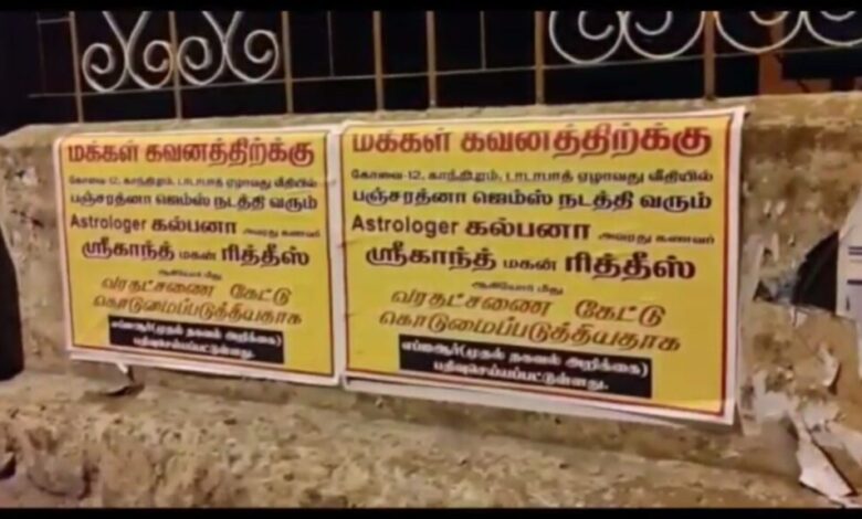 இதனையடுத்து கடந்த செப்டம்பர் 10 ம் தேதி அனைத்து மகளிர் காவல் நிலைய ஆய்வாளர் பிரபாதேவி இதுகுறித்து வழக்கு பதிவு செய்தார். வரதட்சணை கேட்டு மிரட்டியதாக கணவர் ரித்தீஷ்,  அவரது பெற்றோர்  கல்பனா, ஸ்ரீகாந்த் ஆகியோர் மீது கொலை மிரட்டல், காயம் ஏற்படுத்துதல், வரதட்சிணை கேட்டு துன்புறுத்துதல் ஆகிய பிரிவுகளின் கீழ் வழக்குப்பதிவு செய்தனர். இந்நிலையில் வழக்குபதிவு செய்த தகவல் பொது மக்களுக்கு தெரிய வேண்டும் என்பதற்காக, ராசிக்கல் ஜோதிட நிலையம் செயல்படும் பகுதியில் பெண்ணின் உறவினர்கள் நோட்டீஸ் அடித்து ஒட்டியுள்ளனர்.