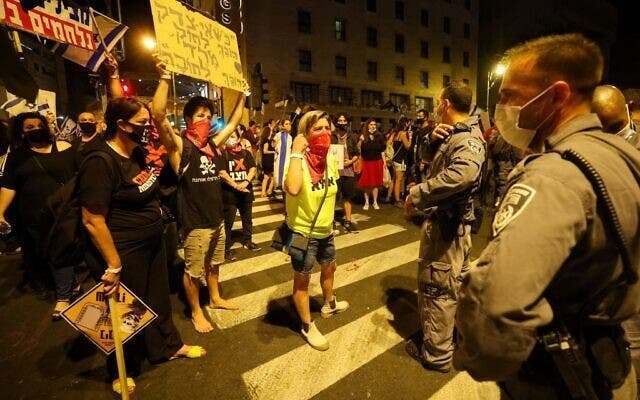 இஸ்ரேலில் கொரோனா இரண்டாவது அலை தொடங்கியதன் காரணாமாக அறிவிக்கப்பட்டுள்ள பொதுமுடக்கத்திற்கு எதிராக மக்கள் வீதிகளில் போராட்டம் நடத்தி வருகின்றனர்.