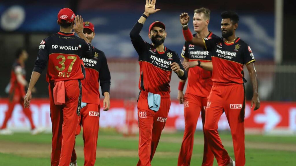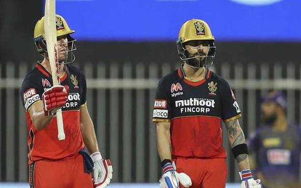 ரஸ்செல் வீசிய ஓவரில் முதல் பந்தில் சிக்சர் தூக்கிய தேவ்தத் படிக்கல் (32 ரன்கள், 23 பந்து, 4 பவுண்டரி, ஒரு சிக்சர்) அதே ஓவரில் போல்டு ஆனார். அடுத்து கேப்டன் விராட்கோலி களம் இறங்கினார். நன்றாக ஆடிய ஆரோன் பிஞ்ச் 37 பந்துகளில் 4 பவுண்டரி, ஒரு சிக்சருடன் 47 ரன்கள் எடுத்த நிலையில் பிரசித் கிருஷ்ணா பந்து வீச்சில் போல்டு ஆனார். அப்போது அணியின் ஸ்கோர் 94 ரன்னாக (12.2 ஓவரில்) இருந்தது.
