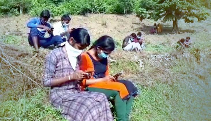 ஆன்லைன் கிளாசில் பங்கேற்க செல்போனில் சிக்னல் வேண்டும் என்பதற்காக மாணவர்கள் 3 கிமீ தூரம் நடந்து மலை உச்சியில் உட்கார்ந்து பாடம் படிக்கும் சூழல் ஏற்பட்டுள்ளது.