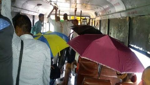 தமிழகத்தில் தற்போது பருவமழை தொடங்கியுள்ள நிலையில், பல மாவட்டங்களில் பரவலாக மழை பெய்து வருகிறது. இதனால் சாலைகள் வெள்ளக்காடாக அளிக்கிறது. வெளியில் பயணம் செய்யும் மக்கள், பேருந்தில் சென்றால் பாதுகாப்பாக செல்லலாம் என நினைத்து பேருந்தில் பயணம் செய்வதுண்டு. ஆனால், இன்று பேருந்திற்குள்ளும் குடை பிடித்துக் கொண்டு பயணம் செய்ய வேண்டிய அவலநிலை ஏற்பட்டுள்ளது.