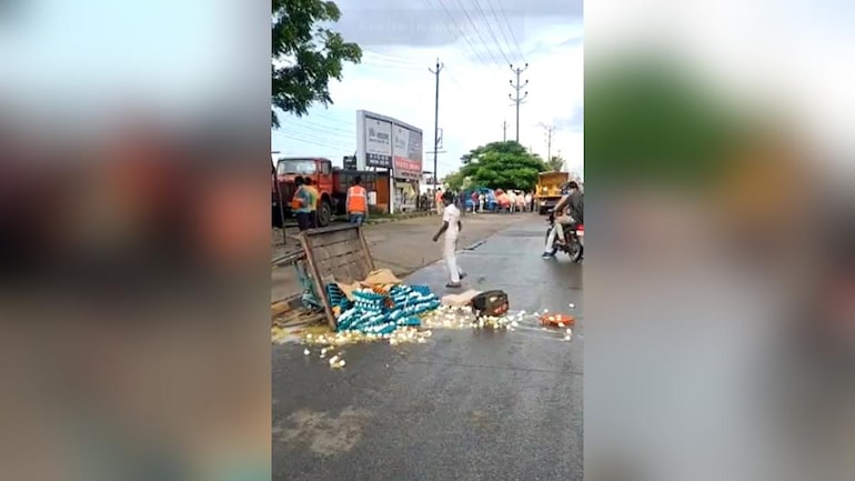லஞ்சம் தர மறுத்ததால் முட்டை வண்டியை கவிழ்த்த அதிகாரிகள்!!!!!
