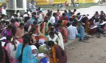 ஆயிரத்திற்கும் மேற்பட்ட மாணவர்கள் பாதுகாப்பின்றி சாலை ஓரம் அமர்ந்து தேர்வு எழுதிய அவலம்!!