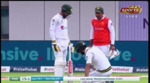 இங்கிலாந்து – பாகிஸ்தான் அணிகள் இடையேயான டெஸ்ட் போட்டியின் போது, பாகிஸ்தான் முன்னாள் கேப்டன் சர்ஃபராஸ் அஹ்மத், களத்தில் விளையாடிக் கொண்டிருந்த பேட்ஸ்மேன்களுக்கு ஷூ மற்றும் தண்ணீர் பாட்டில்கள் கொண்டு வந்த சம்பவம் அரங்கேறியுள்ளது.