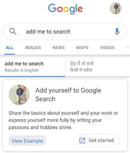 கூகுளின் புதிய பீப்பிள் கார்ட்ஸ் சேவையை கொண்டு பயனர்கள் அவர்களுக்கான விர்ச்சுவல் விசிட்டிங் கார்டை உருவாக்கி கொள்ள முடியும். இதனை உருவாக்க பயனற்கள் சைன் இன் செய்து உங்களின் பெயர் அல்லது add me to search என சர்ச் பாக்சில் டைப் செய்ய வேண்டும்.